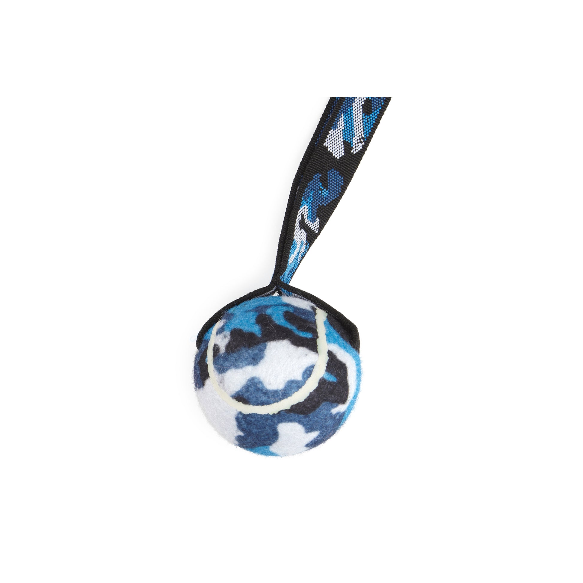 - Camouflage tennis ball with a sturdy nylon strap for extra-long throws